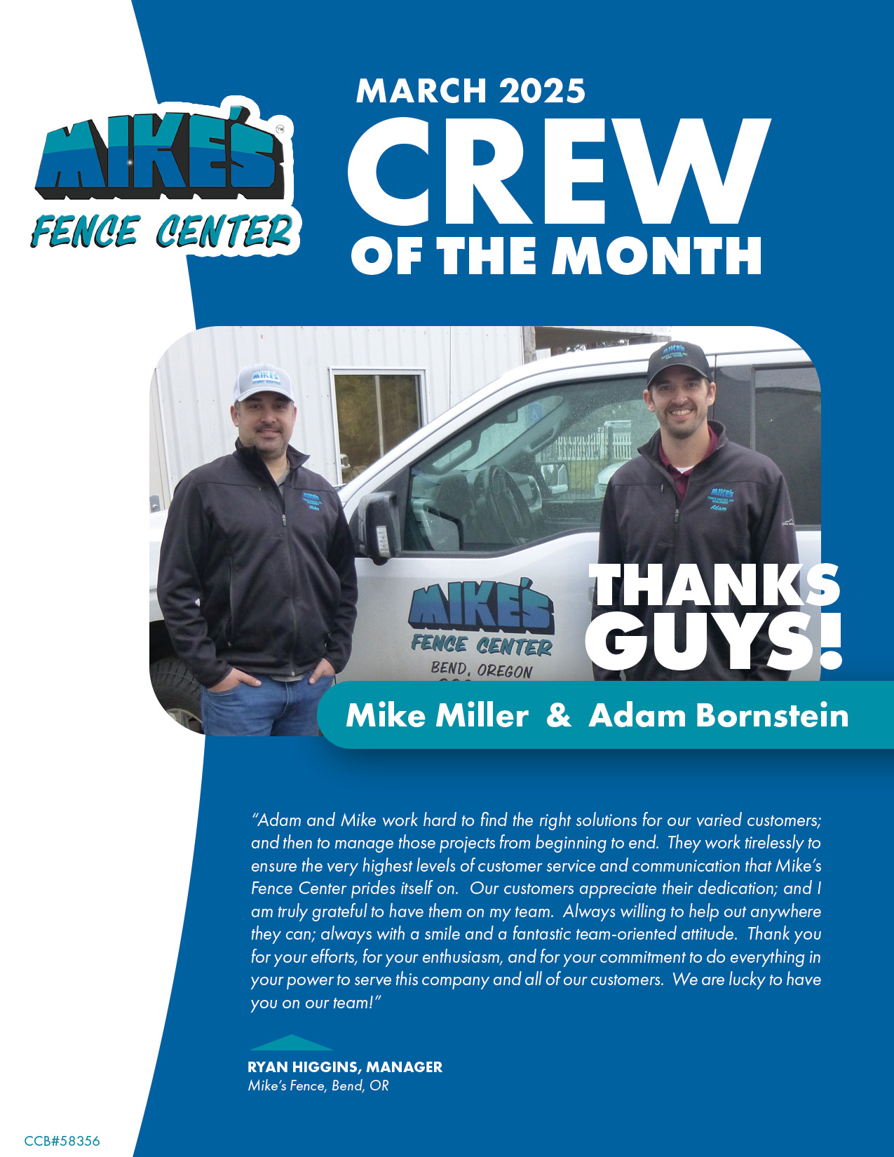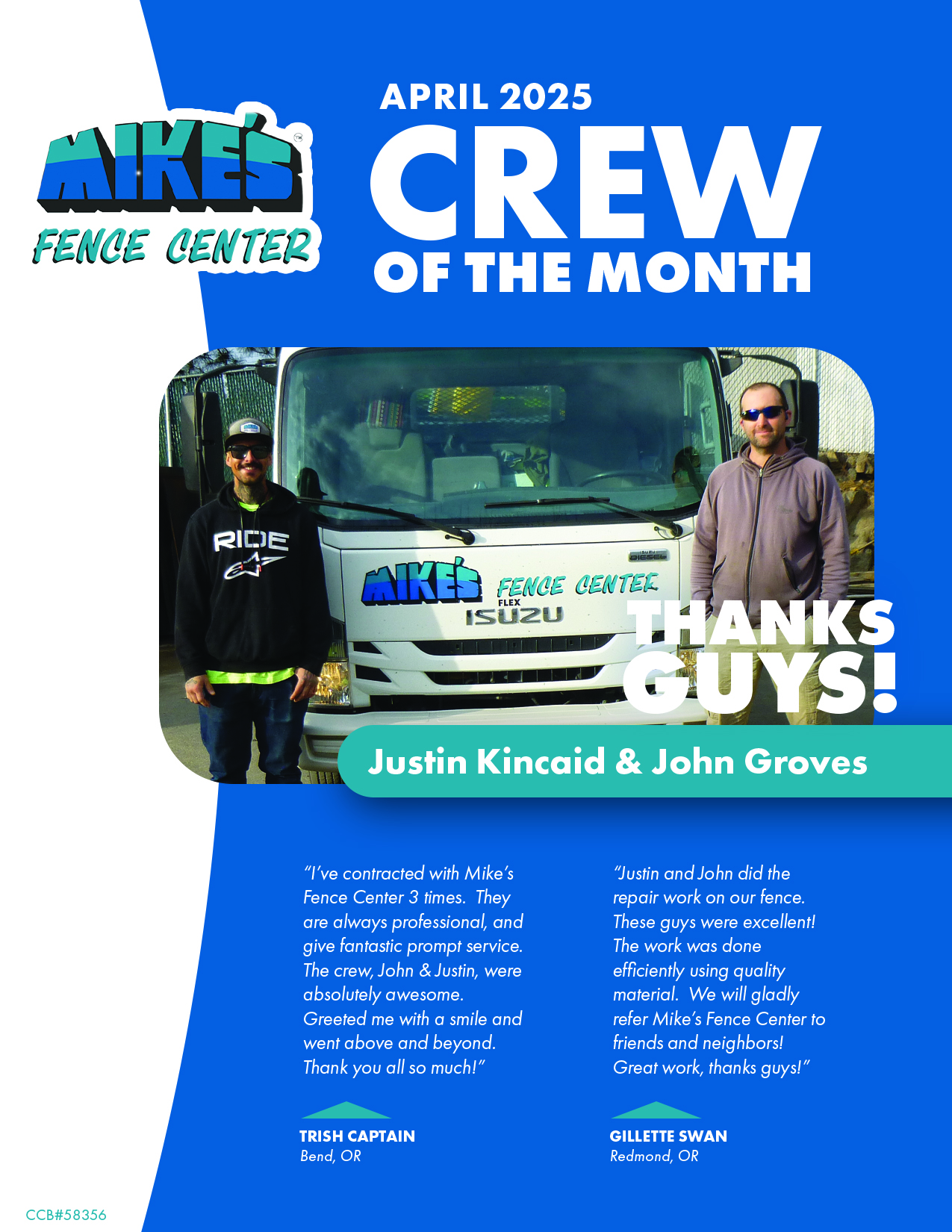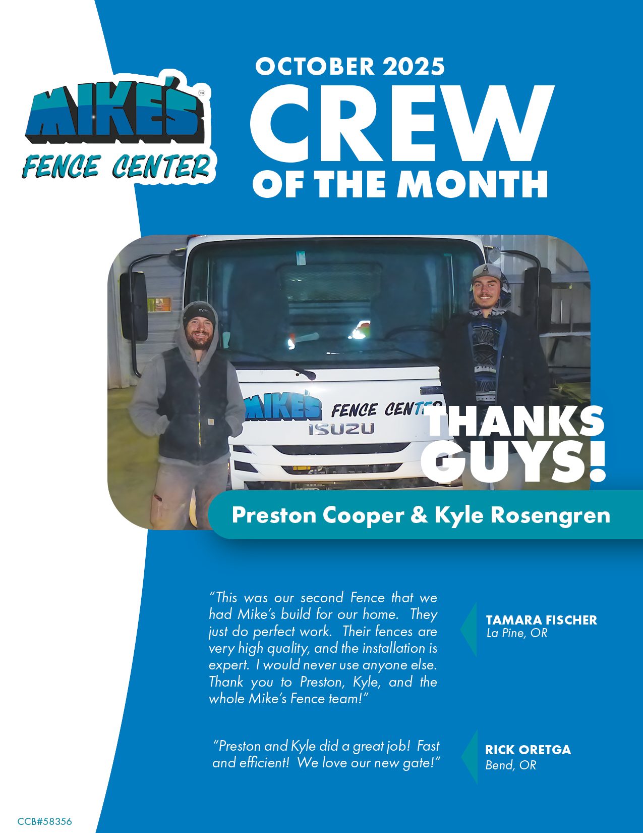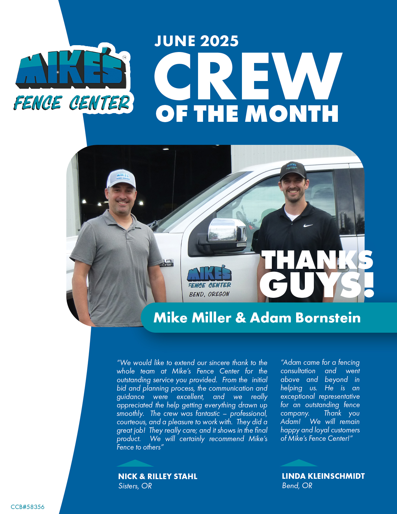 Building upon a reputation of quality and service from day one, Mike’s Fence Center is the standard for service in Central Oregon. We value our customers’ trust and work in earnest to provide only the best quality and service in every project.  Proof of this reputation can be found in the hundreds of letters that we receive from our loyal customers every year, or, just like our recognizable jingle, you can find out by simply asking your neighbor.