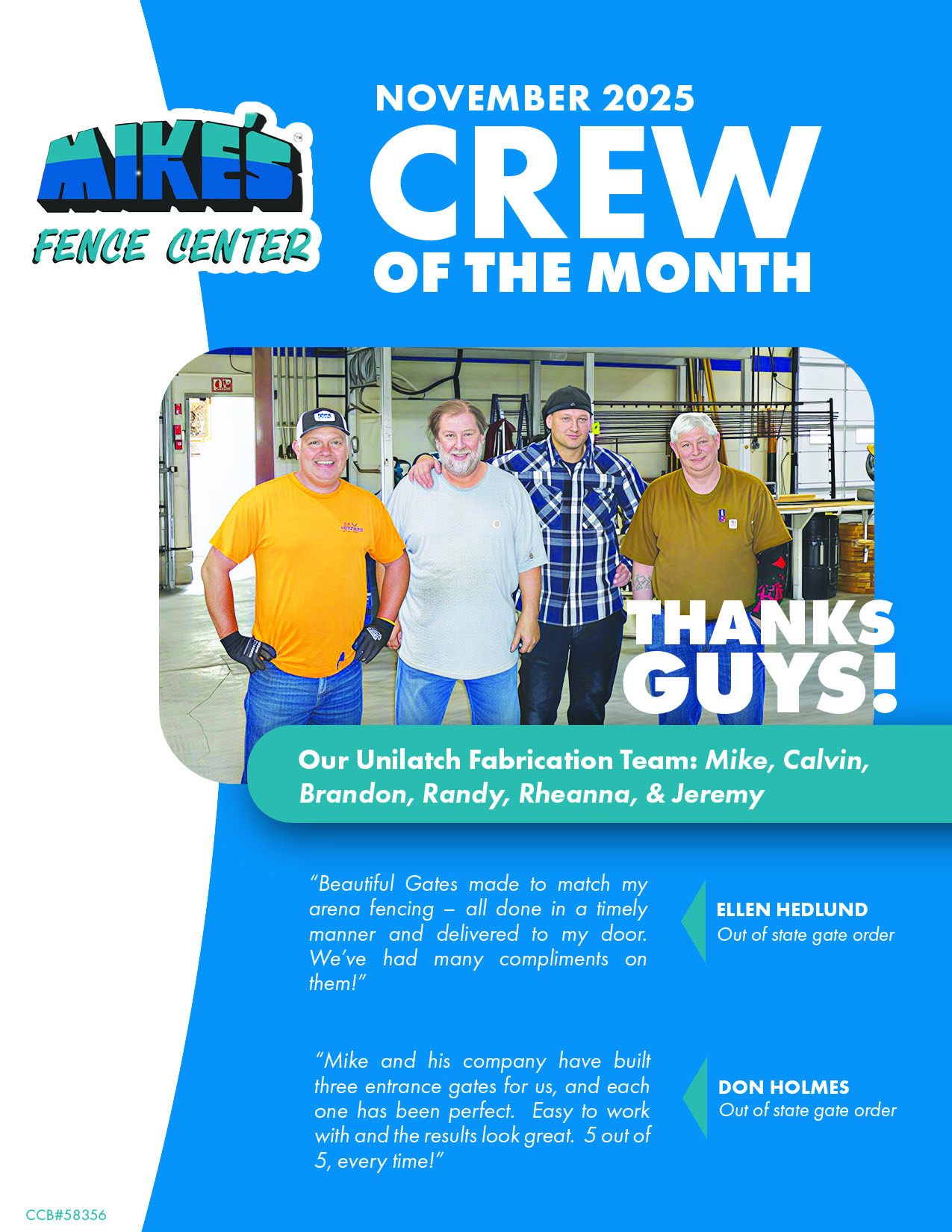 One of the strongest brand names in Central Oregon, Mike’s Fence Center has been building fences in Central Oregon for over 40 years. Mike started the company with his wife Cathie, his brother Jeff, and his dad Jack back in 1980 in Prineville, working out of his garage. Eventually moving the company to Bend, we have expanded our services throughout the years from simple fencing to automated gate entry systems, mobile mix concrete delivery, and every imaginable type of fencing, including custom fabrication. Many people are surprised to find out that it is still the same family team who arrive first to the office each morning, even today.